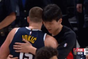 GIF-約基奇看到了楊瀚森 過去兩個(gè)人愛的抱抱