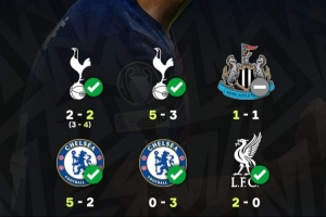 歐冠:5-3熱刺、1-1紐卡、5-2切爾西、3-0切爾西、2-0利物浦