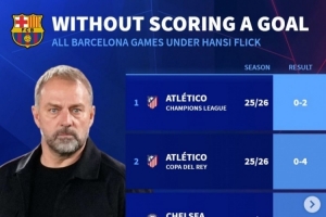 體育資訊4月9日訊 歐冠1/4決賽首回合比賽,巴薩主場(chǎng)0-2不敵馬競(jìng),據(jù)德國(guó)轉(zhuǎn)會(huì)市場(chǎng)統(tǒng)計(jì),弗里克執(zhí)教巴薩以來僅5場(chǎng)比賽被零封,其中2場(chǎng)就是對(duì)陣馬競(jìng)。