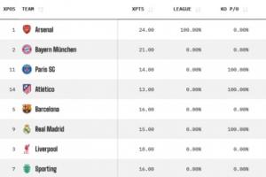 體育資訊04月09日訊 歐冠1/4決賽首回合較量全部結(jié)束,巴薩0-2馬競(jìng),巴黎2-0利物浦,皇馬1-2拜仁,葡體0-1阿森納。Opta超算更新了最新的歐冠奪冠概率。