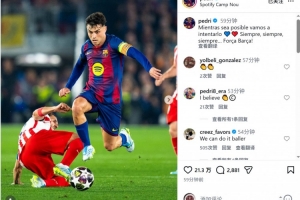 巴薩中場(chǎng)佩德里社媒曬出比賽照片,配文:“只要還有可能,我們就會(huì)努力嘗試。永遠(yuǎn)、永遠(yuǎn)、永遠(yuǎn),加油巴薩!”