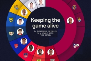 其中對陣馬競便有3場。而與此同時,五大聯(lián)賽其他球員同期最多只有一場成功過人9+。