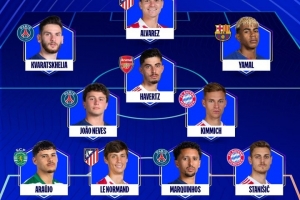 中場(chǎng):若昂·內(nèi)維斯(巴黎)、哈弗茨(阿森納)、基米希(拜仁)