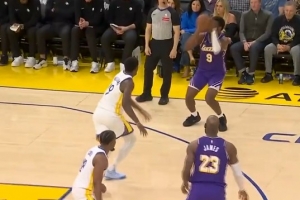 一場(chǎng)兩創(chuàng)歷史紀(jì)錄~詹姆斯分球布朗尼進(jìn)三分 本場(chǎng)父子兩人互相助攻