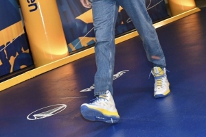 “他應(yīng)該是從球鞋珍藏柜里拿出來的吧,”詹姆斯笑著說,“我記得他穿過那雙,我不知道是不是他的新秀年。他是哪一年進(jìn)聯(lián)盟的,10-11年嗎?好吧,是09-10年,所以那是詹姆斯10代吧,我記得他以前在比賽中穿過那雙,我不確定他是不是有一雙額外的,這雙可能就是那雙,他應(yīng)該是從球鞋珍藏柜里拿出來的吧?!?/p>