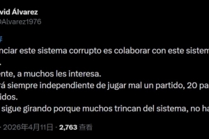 體育資訊4月11日訊 皇馬TV主持人David álvarez更新社媒,表達(dá)了對(duì)皇馬1-1赫羅納比賽中判罰的不滿。