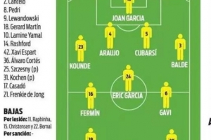 中場(chǎng):加維、埃里克·加西亞、費(fèi)爾明