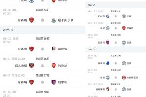 阿森納英超剩余賽程: