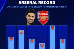 體育資訊4月11日訊 阿森納在本輪英超爆冷主場(chǎng)1-2不敵伯恩茅斯,數(shù)據(jù)統(tǒng)計(jì)顯示塔帥執(zhí)教阿森納的賽季最后7輪聯(lián)賽從未拿滿(mǎn)分?jǐn)?shù)。