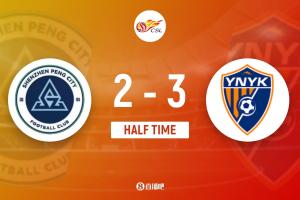 半場戰(zhàn)罷,云南玉昆暫3-2深圳新鵬城。